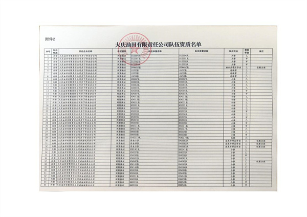 大慶東油15001隊(duì)(大慶油田)資質(zhì)證書(shū)